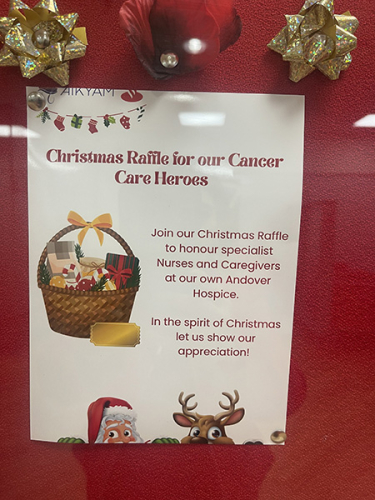 We are deeply grateful to everyone who participated so generously in the raffle. Your kindness and contributions have not only brought festive cheer but have also made a meaningful impact in recognising and supporting the hospice team’s invaluable work. Thank you for standing with us in celebrating and honouring those who give so much to others.